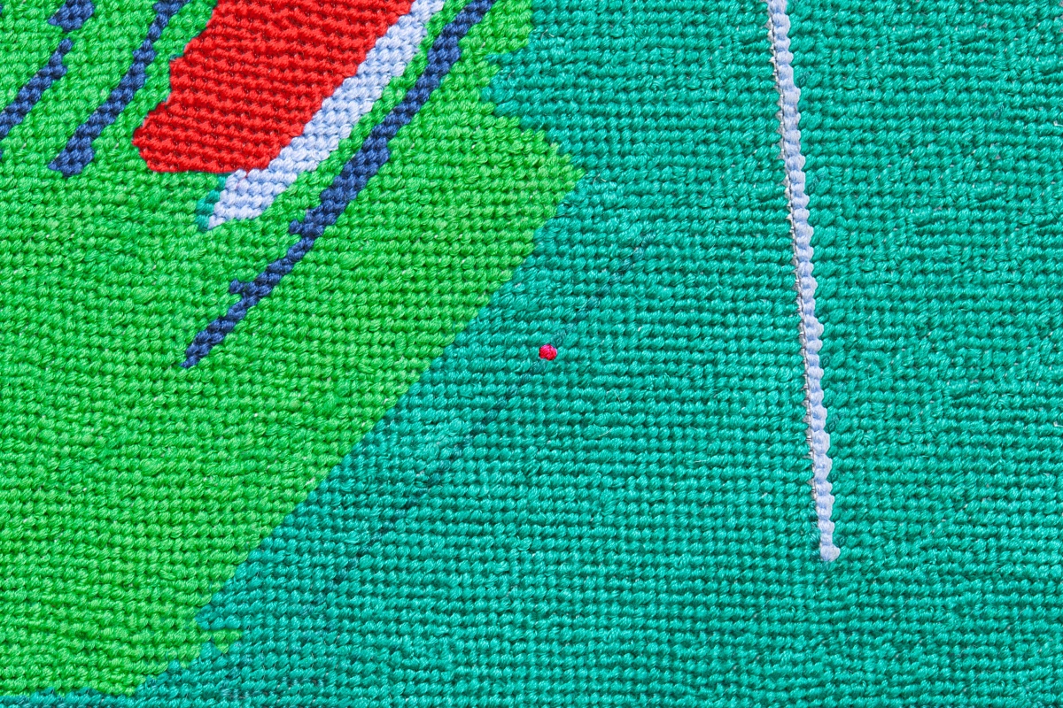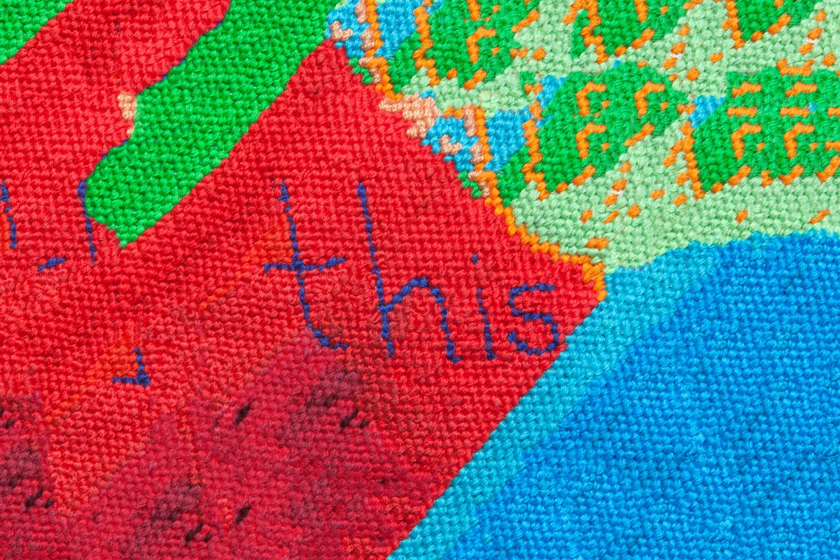 is this it? is a series of Digital C-Prints of hand-embroidered texts, whose meanings alter poetically depending on the way they are installed in a space.