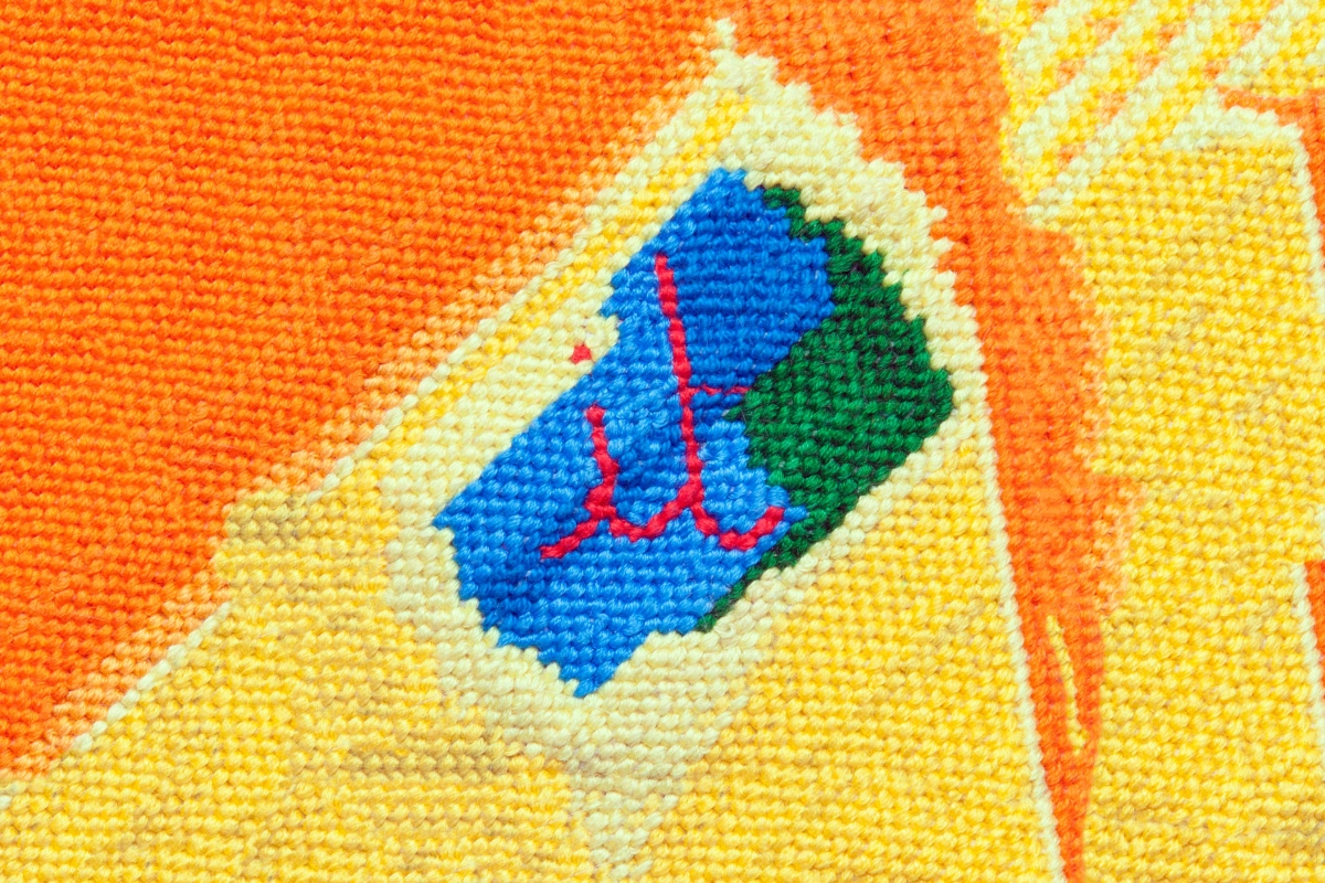 Installation view from "Unravelled," Beirut Art Center, curated by Rachel Dedman and Marie Muraccolie, with artists Majd Abdel Hamid, Mounira Al Solh, Yto Barrada, Taysir Batniji, Alighiero e Boetti, Michele Cohen, Janna Dyk, Mona Hatoum, Sheila Hicks, Annette Messager, Khalil Rabah, Karen Reimer, Nasri Sayegh, Laure Tixier, and Raed Yassin.